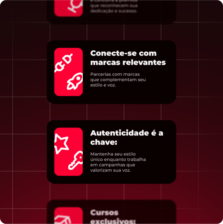 Para alcançar esse objetivo, realizei pesquisas para identificar os principais benefícios que a agência já oferecia aos influenciadores cadastrados, além de compreender suas necessidades e desejos.