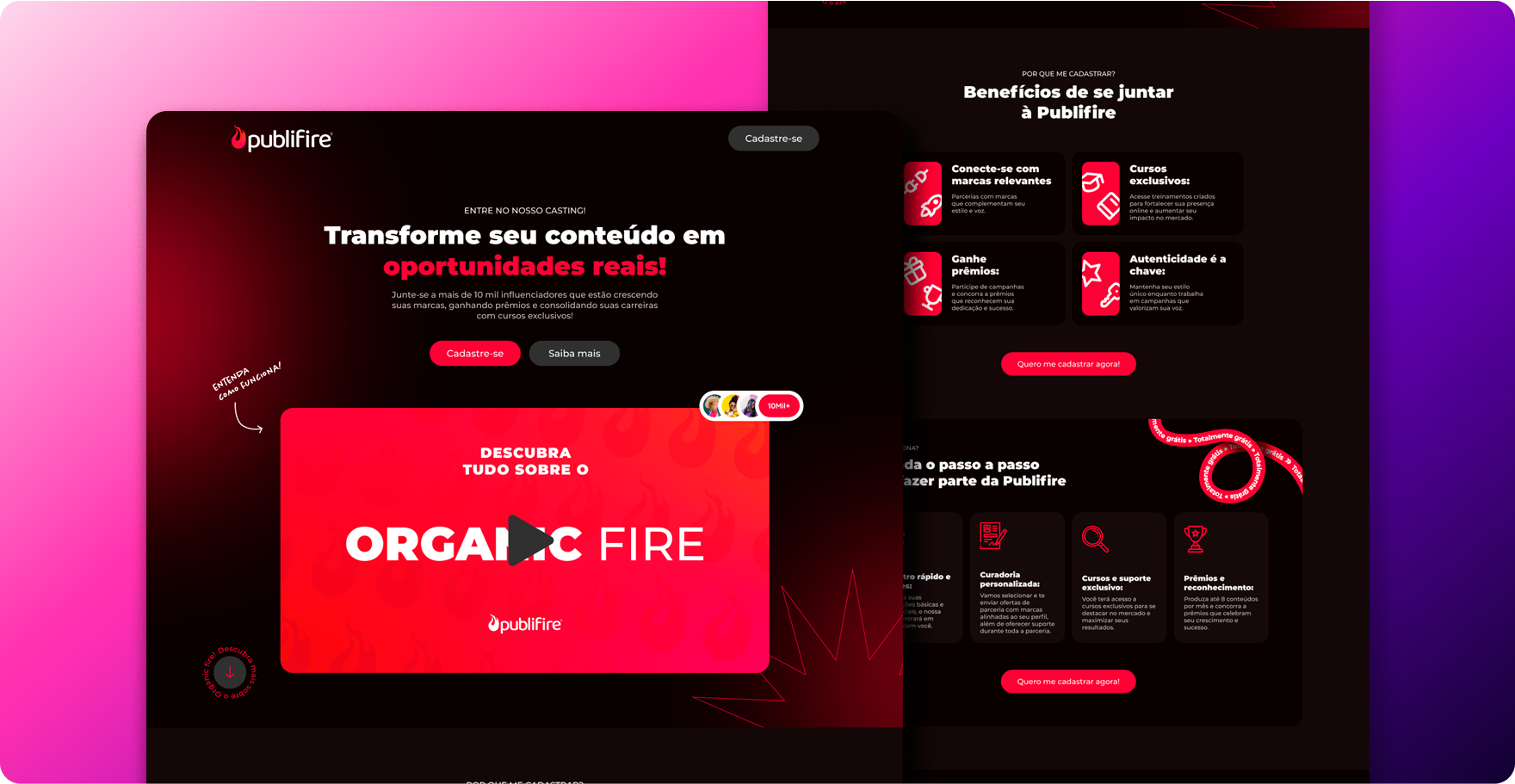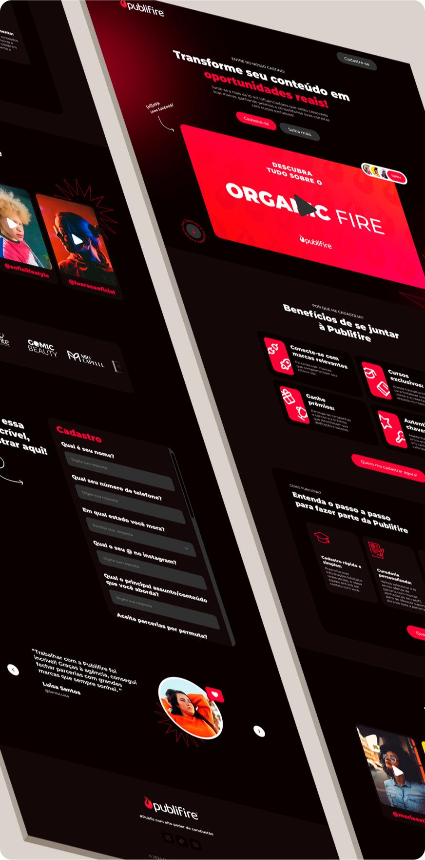 Com base nesses insights, desenvolvi uma página de captura com uma comunicação estratégica e assertiva, destacando as soluções que a agência proporciona e que são essenciais para os influenciadores. Além da página, foi criada uma campanha de anúncios no Instagram para direcionar leads ao projeto.
